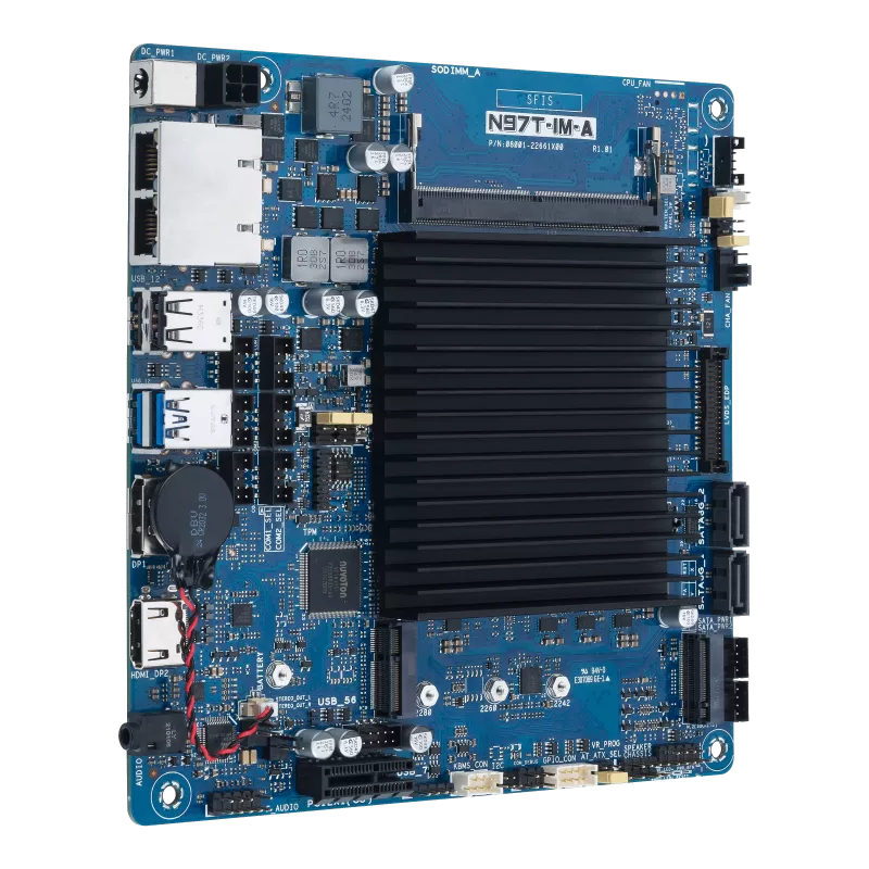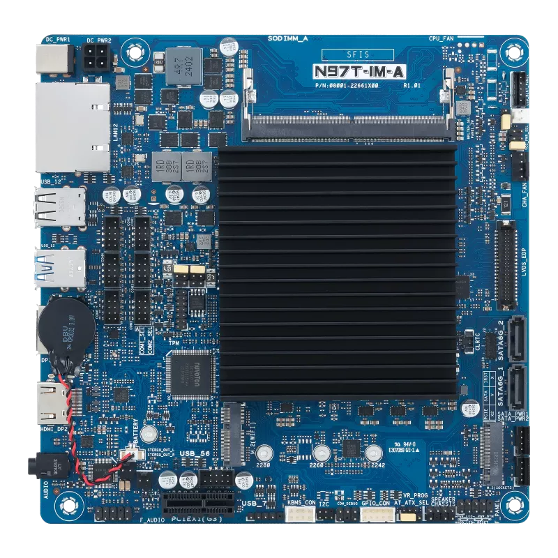 Thin mini ITX, Intel® N97 SoC onboard Processors(ADL N platform), 1* SO DIMM.1*PCIe x1, HDMI,DP, LVDS, Dual LAN, M.2 slot